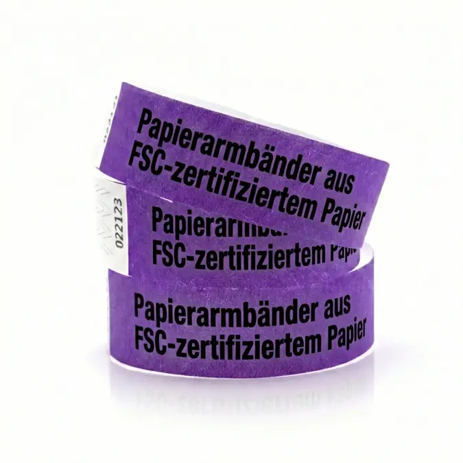 Biologisch abbaubare Tyvek Einlass- und Kontrollbänder sind für umweltbewusste Menschen gedacht. Die Eintrittsbänder sind biologisch abbaubar und aus kompostierbarem Papier hergestellt, das selbstverständlich FSC-zertifiziert ist. Unsere Eintrittsbänder sind aus starkem und haltbarem Papier hergestellt, das flexibel ist und sich leicht um das Handgelenk schließen lässt.