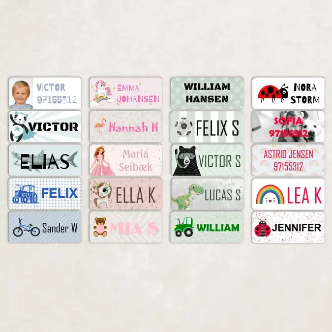 Gestalten Sie die Namensetiketten individuell - mit Motiven, Telefonnummer oder Foto Ihres Kindes. Unser Konfigurator bietet Ihnen alle nur denkbaren gestalterischen Möglichkeiten. Die Schule-Namensaufkleber für Ihr Kind können Sie so designen, wie es Ihnen und Ihrem Kind am besten gefällt - gestalten Sie sie einfach gemeinsam, das ist ein Riesenspaß für Ihr Kind! Sie haben dabei die Wahl zwischen unterschiedlichen Schriftarten, schönen Tier- oder auch Fantasiemotiven für sowohl Jungen als auch Mädchen, zwischen großartigen, farbigen Hintergründen und vielem mehr.