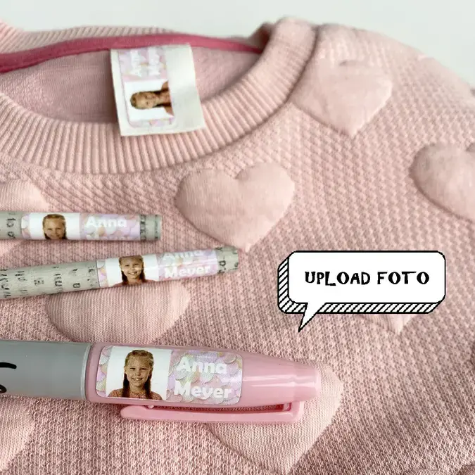Damit Verlorengegangenes noch schneller Ihrem Kind zugeordnet werden kann, können Sie auf Wunsch auch ein Foto Ihres Kindes auf dem Namensetikett einfügen. Insbesondere Lehrer, Mitschüler oder deren Eltern können dann (da sie das Gesicht Ihres Kindes kennen) den verlorenen Gegenstand schnell Ihrem Kind zuordnen und die Rückgabe ist ein Klacks. Wichtig: Bedenken Sie hier die kleine Gesamtgröße des Etiketts - falls Sie also ein Foto Ihres Kindes auf dem Namensetikett einfügen möchten, dann schneiden Sie auf einem hellen Foto das Gesicht Ihres Kindes in unserem Konfigurator am besten so gut es geht aus. So gewährleisten Sie, dass dieses auf dem späteren Etikett auch gut und so groß wie möglich zu erkennen ist.